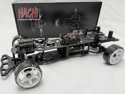 Bingo RC Designs’ latest product, the Bingo Hachi Drift Car, is a mid-motor, fixed rear axle RC drift car designed for ease of construction and drifting. The name “Hachi” translates to “Bee” in Japanese (kanji 蜂), following the Bingo Wasp line of RC chassis products.