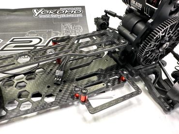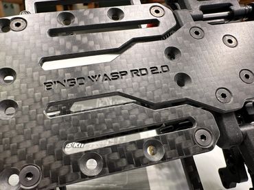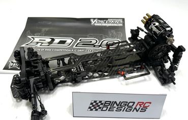 The Bingo RC Designs Wasp RD 2.0 is a carbon fiber upgrade chassis for the Yokomo Rookie Drift 2.0. It replaces the lower and upper decks, reducing weight and increasing flexibility.
